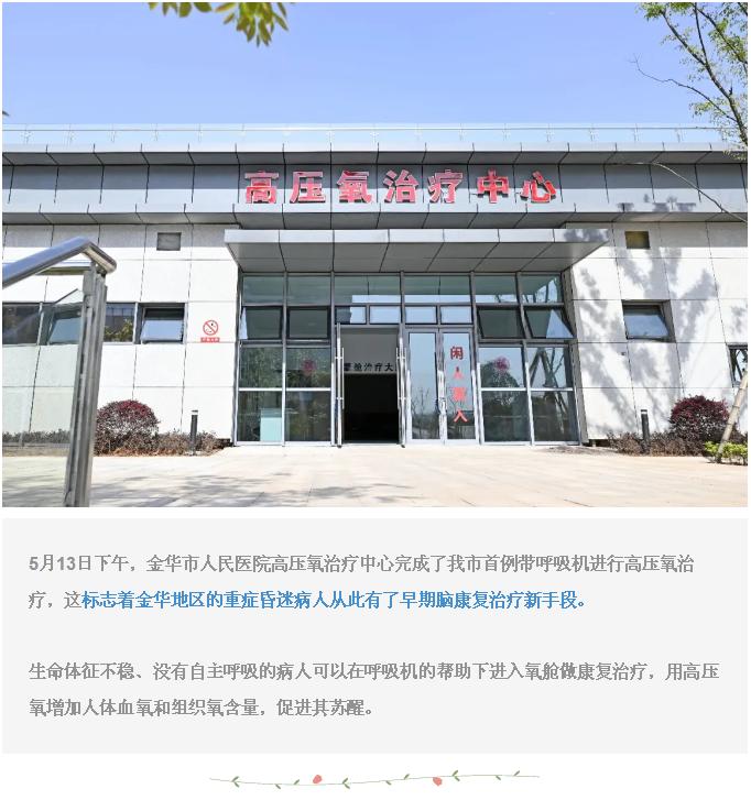 彰顯實(shí)力!金華市人民醫(yī)院完成首例帶呼吸機(jī)高壓氧治療